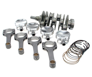 2.71L - Includes 4340 billet crank, 83mm stroke, I-beam rods w/ARP2000 bolts (5.141 c-to-c), and custom pistons (choice of bore/compression). ACL Race bearings available separately. |