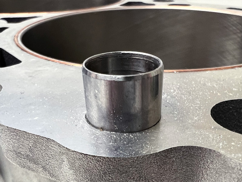 Copper O-Rings with .012" protrusion are inserted around the cylinder bores to contain combustion.